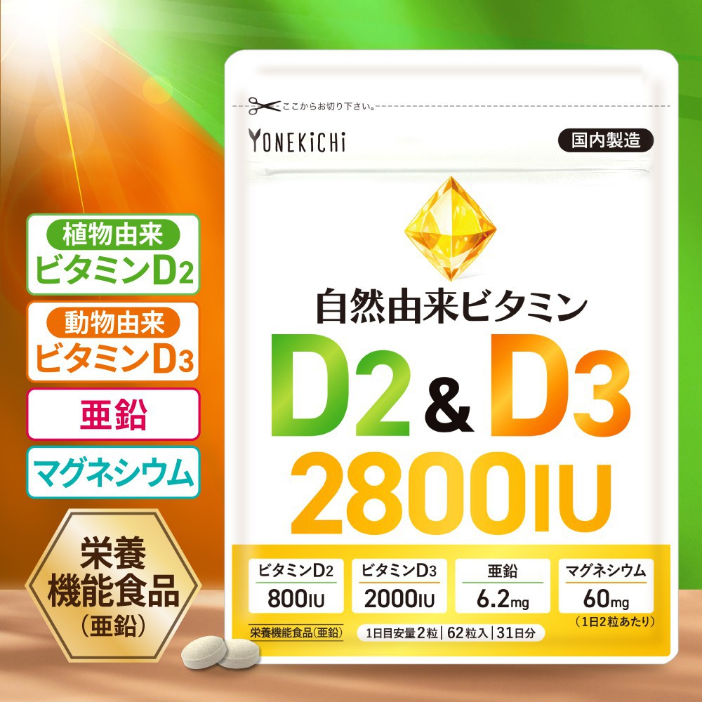 本商品は、ビタミンD2(800IU)とビタミンD3(2000IU)を配合したビタミンDサプリメントです。合成ビタミンを使用せず、酵母から摂った自然由来ビタミンにこだわりました。
